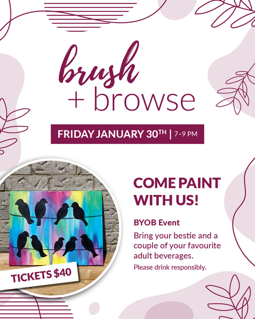 Original price $40.00 - Original price $40.00Original price$40.00$40.00 - $40.00Current price $40.00Brush & Browse Paint Workshop - Friday January 30th from 7PM - 9PM