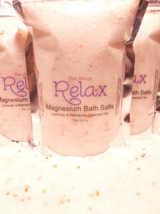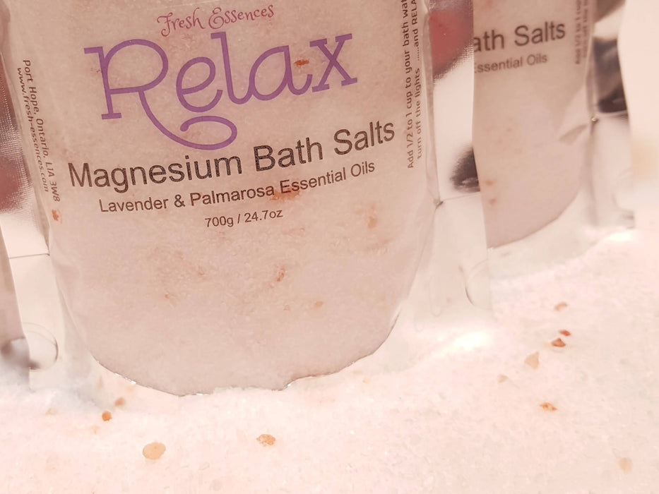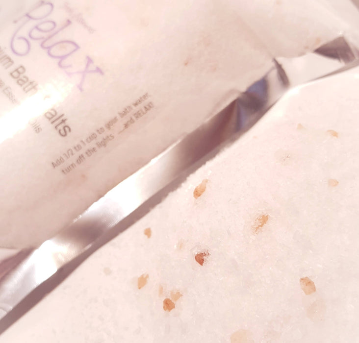 100% Natural Magnesium Bath Salts when you just want a no-frills relaxing soak in the tub with all the benefits of Magnesium from the Epsom Salt as well as over 80 trace minerals from the Pink Himalayan salt. All of this accompanied with a special blend of pure essential oils to help you relax.