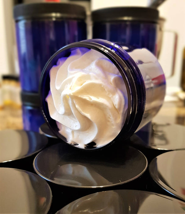 Super nourishing, creamy, handcrafted whipped body butter loaded with Shea, Cocoa, Kokum and Mango butters that melt on skin contact.